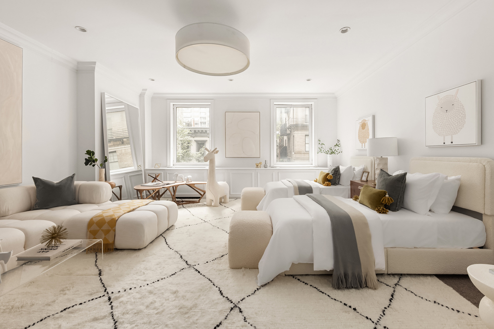 The fifth floor is leased to a residential tenant (month to month), and spans the entire top floor, with a beautiful south facing terrace. galley kitchen, full bathroom, large primary suite with fireplace, and extension, currently utilized as a children’s room.