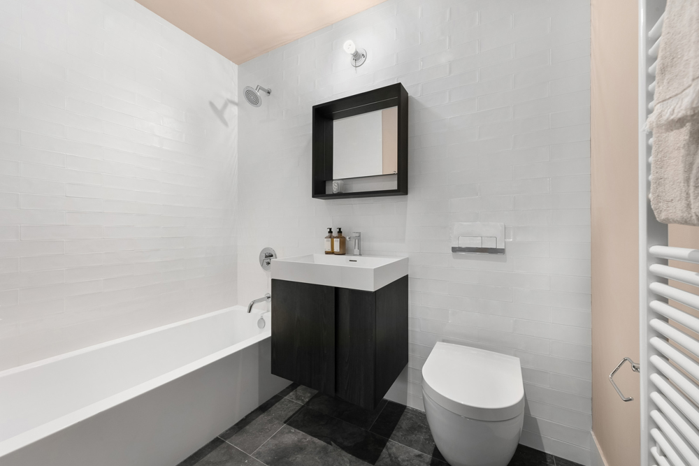 Escape to your thoughtfully designed edifice, complete with contemporary finishes and purposeful aesthetics. Notable features include French white oak wide plank flooring, bespoke Italian kitchen cabinetry, in-unit Washer/Dryer with Heat-Pump technology, and an Energy Recovery Ventilator (ERV) System. The apartment is situated between Avenues C and D, offering the perfect balance of accessibility and privacy.