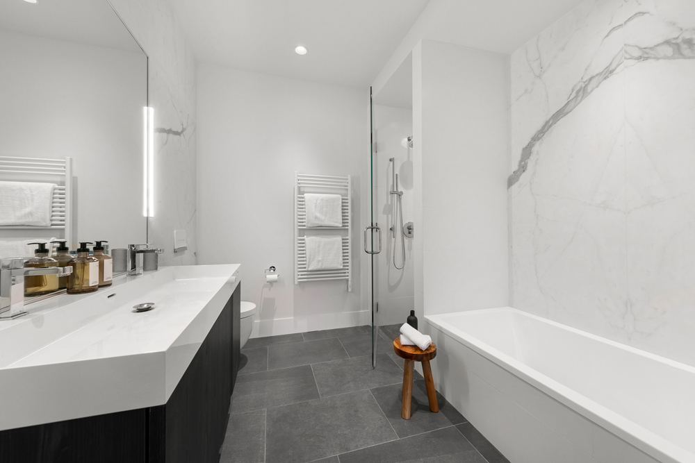 The master suites are situated away from living areas and adorned with huge closets and sublime en-suite bathrooms. Northern exposure guarantees that morning light will be soft and dreamy, and attached balconies add a dose of fresh air to morning and nighttime routines.