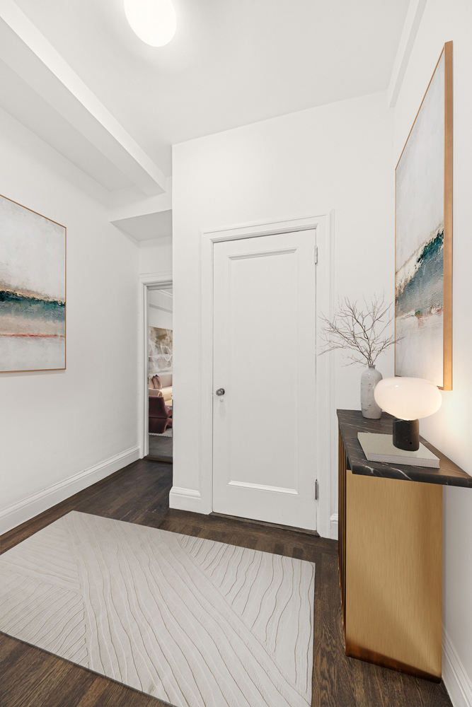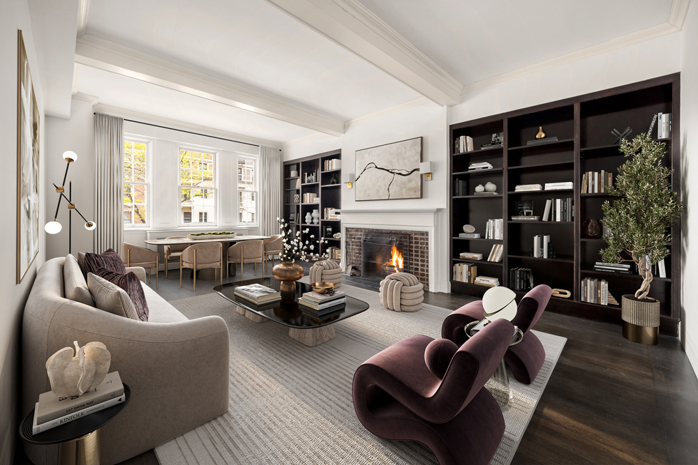 What truly distinguishes this home, however, are the soaring 10-foot ceilings which add tremendous scale and create an open, sun-drenched atmosphere; large, oversized windows frame the iconic views of lower Fifth Avenue and flood the space with natural light.