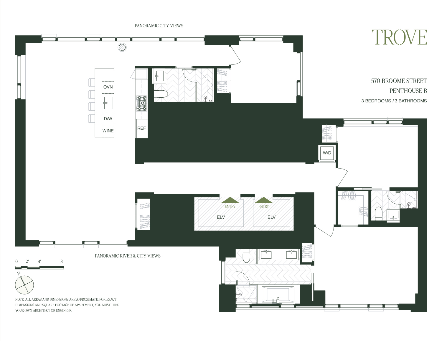 Designed by esteemed architect Tahir Demircioglu with interiors by Skidmore, Owings and Merrill, 570 Broome is an unrivaled contemporary condominium featuring sleek styling and a wealth of five-star amenities. Residents of the luxury enclave enjoy a stunning 24-hour attended lobby and lush garden, a private lounge with a terrace, a state-of-the-art fitness center with a yoga/boxing studio, a bike room, storage units, and a pet wash. The building has also recently installed a spa, inclusive of dry and infrared saunas, a cold plunge, and a massage room.