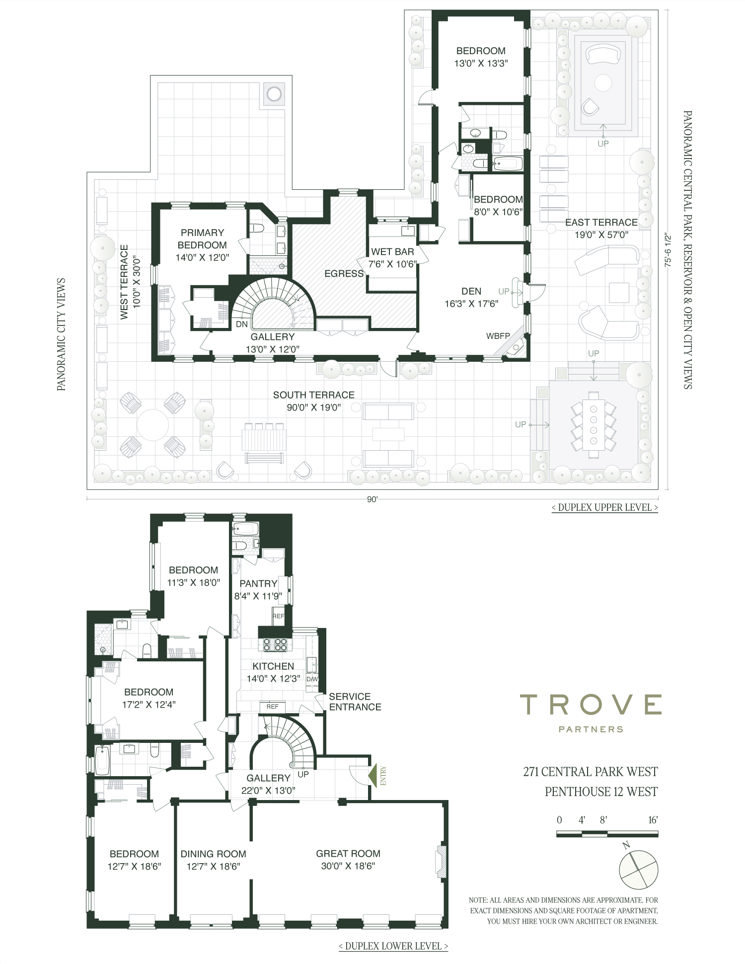 A masterpiece of indoor-outdoor living, this monumental pre-war duplex spans approximately 5,000 interior square feet, crowned by a rare 4,000-square-foot wrap-around terrace.
