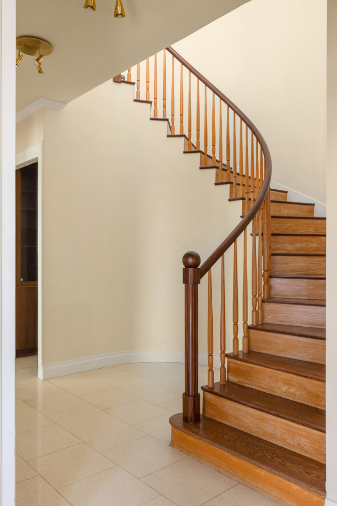 Entering via a semi-private landing, the foyer reveals a dramatic double-height staircase. The main level is designed for grand entertaining: a south-facing living room with 10-foot ceilings and a fireplace, a formal dining room, and a chef’s kitchen with extensive pantry space. Three spacious bedrooms complete this floor.