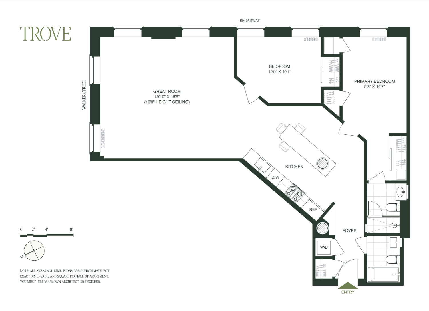 Standing on the corner of Walker and Broadway the Art Deco building, designed by the noted prolific architect Robert Maynicke, has a gorgeous limestone and brick façade with arched windows. Amenities include a grand beautifully landscaped roof deck with incredible city views, a live-in resident manager and two elevators.